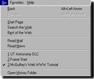 En el navegadore de Explorer, selecciona "Read Me" del men� desplegable de "Go", tal como indicado en la figura adyacente. Esto lanzar� una ventana de interfaz de correo parecida a la figura que sigue. Esta interfaz tiene tres partes b�sicas: la ventana de correo principal, un juego de botones de control y un juego de men�s desplegables en la parte superior. Comencemos por examinar la ventana de correo principal (la porci�n de la interfaz que sigue debajo de los botones de control).