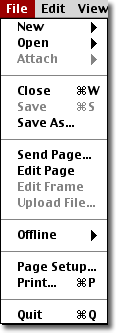 The "File" pulldown menu has the entries shown in the following figure