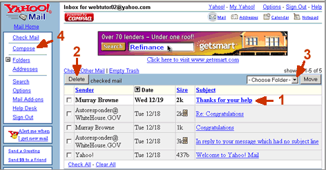On Yahoo, the message subjects will be listed; each will be a link to the corresponding message. Handling Mail