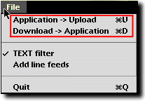 "Download --> Application" or "Application --> Upload", and incorporate these
