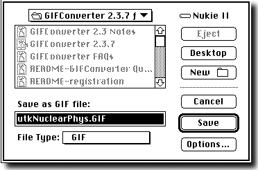 In this dialog box, select "GIF" for the format, select your homepage folder