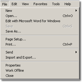 - Work Offline: Allows you to temporarily view Web pages without being connected to the Internet.