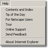 About Internet Explorer: Identifies which version of Microsoft Internet Explorer you are running. Includes registration information also.