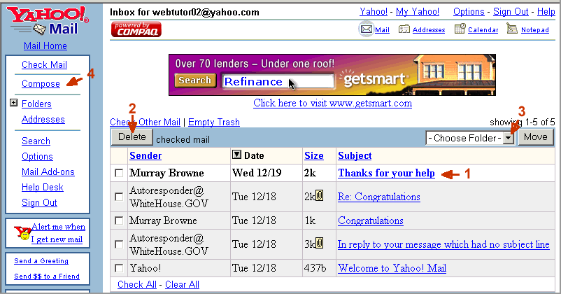On Yahoo, the message subjects will be listed; each will be a link to the corresponding message. Handling Mail