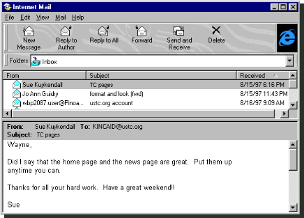 Browser. As noted in the previous section, many browser-based mail systems are in use, so we can only give a representative example. For purposes of this discussion, we will assume that the browser is