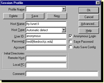 Erase any entries in the fields of the main WS_FTP LE Session Profile