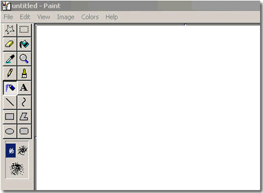 Changing FormatAlthough the newer versions of Internet Explorer can display inline images in the BMP format, some earlier versions did not. Netscape still does not display this format inline, but instead launches a helper application to show the figure. Consequently, if you have images in this format and you want to make sure that the widest possible audience can view your images as integral parts of your web pages, you should convert the files to either GIF or JPEG format. There are many graphics programs that can perform such conversions. Such conversion is, for instance, a feature of high-end programs such as Adobe Photoshop. But the conversion can also often be accomplished with much less expensive software, some of which may come bundled with your computer. A program in the latter category may be the Microsoft program Paint which is included as one of the accessories with the Windows operating system software. (We say "may" because while versions of the program available with Windows 98, and newer versions of the operating system, allow you to save files in GIF and JPEG formats, under some older versions of Windows Paint only allows you to save in BMP format.) To access the program, select Programs, then Accessories, and then Paint. The opening screen will look like this: