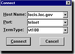 You can make a connection to the Library of Congress by typing into the "Host Name" window of this popup