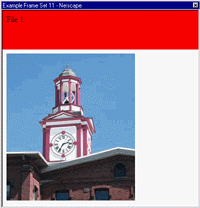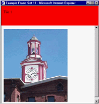 To this point we've mostly loaded very simple HTML pages into the frames of our various example frame sets: almost every file had only a solid color background and a short piece of text (Frame 1, Frame 2, etc.). Now let's look at an example where one of the frames contains nothing but a single image: Example 11.