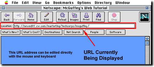 (4) You can use the "Go" or "Bookmarks" pulldown menus to select URL addresses previously visited. There are a few other ways to navigate too, but these are sufficient for most purposes.